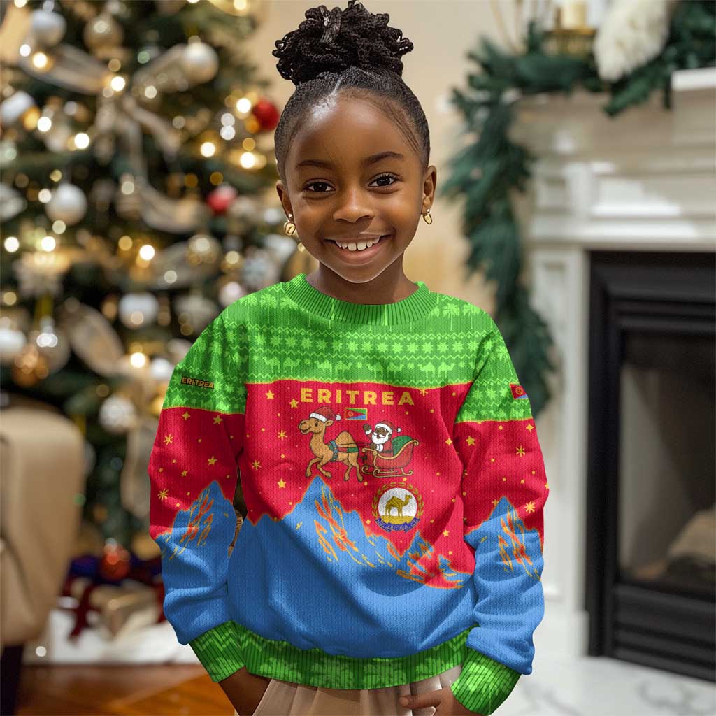 Eritrea Christmas Kid Ugly Christmas Sweater Santa Claus Camel Sleigh National Emblem TS04