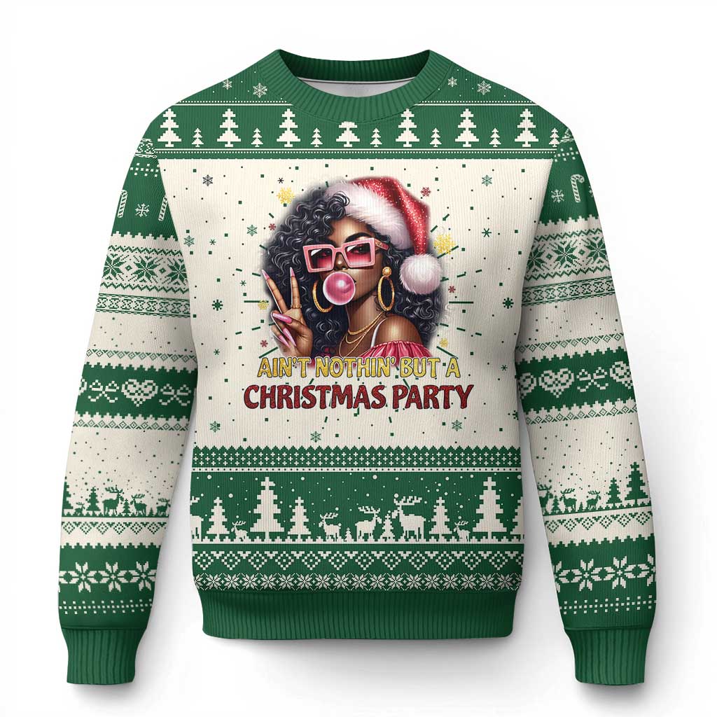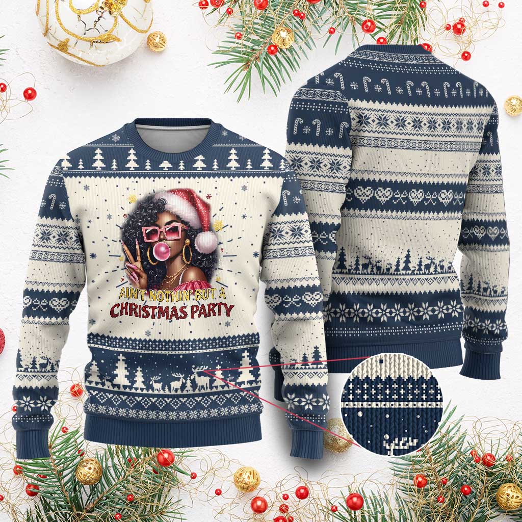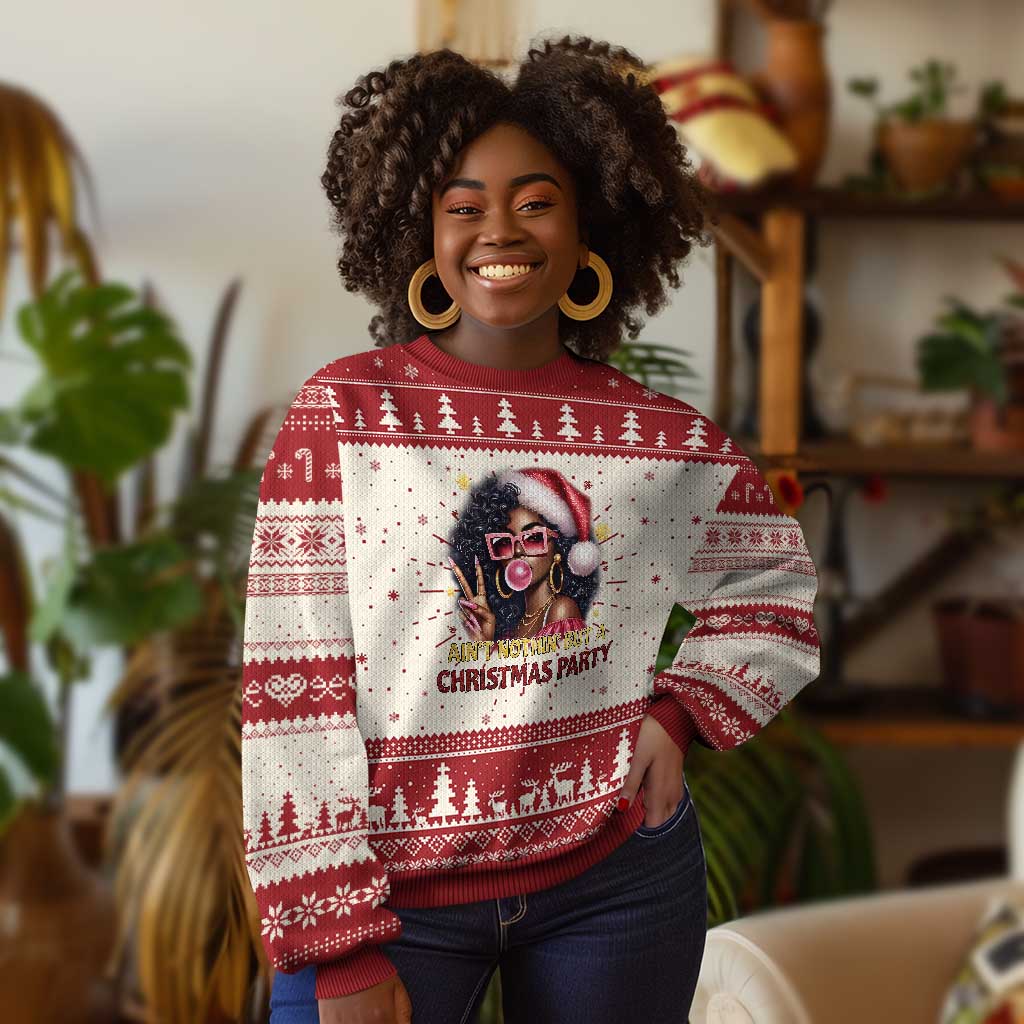 Funny Ain't Nothin' But A Xmas Party Ugly Christmas Sweater African American Christmas Black Melanin Santa Girl
