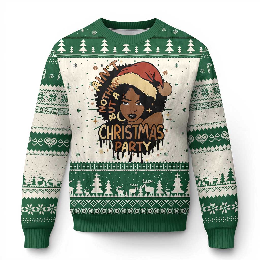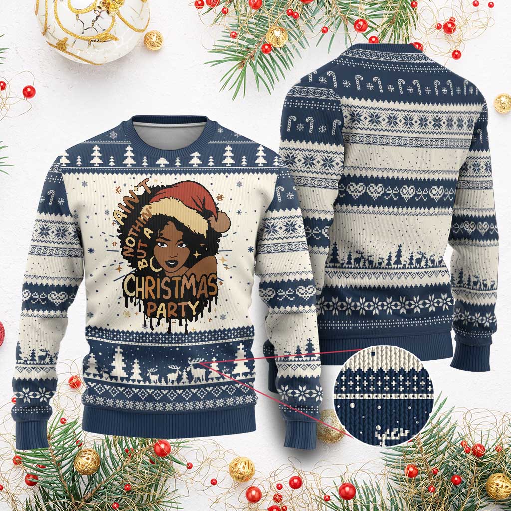 Funny Ain't Nothing But A Xmas Party Ugly Christmas Sweater African American Christmas Santa Black Melanin Girl