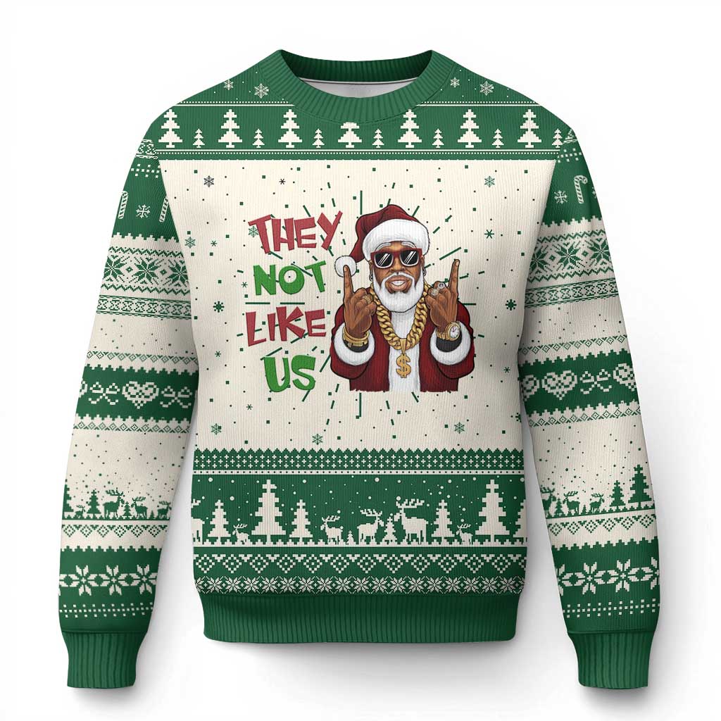 Funny Black Santa Xmas Hiphop Ugly Christmas Sweater They Not Like Us African American Christmas