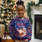 Haiti Christmas Kid Ugly Christmas Sweater Blue Red Xmas Santa Snowflake and Map