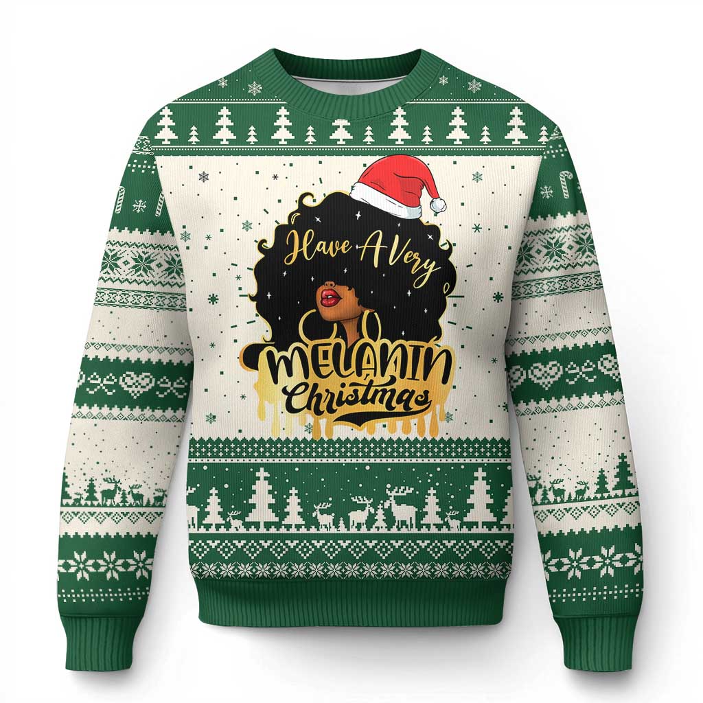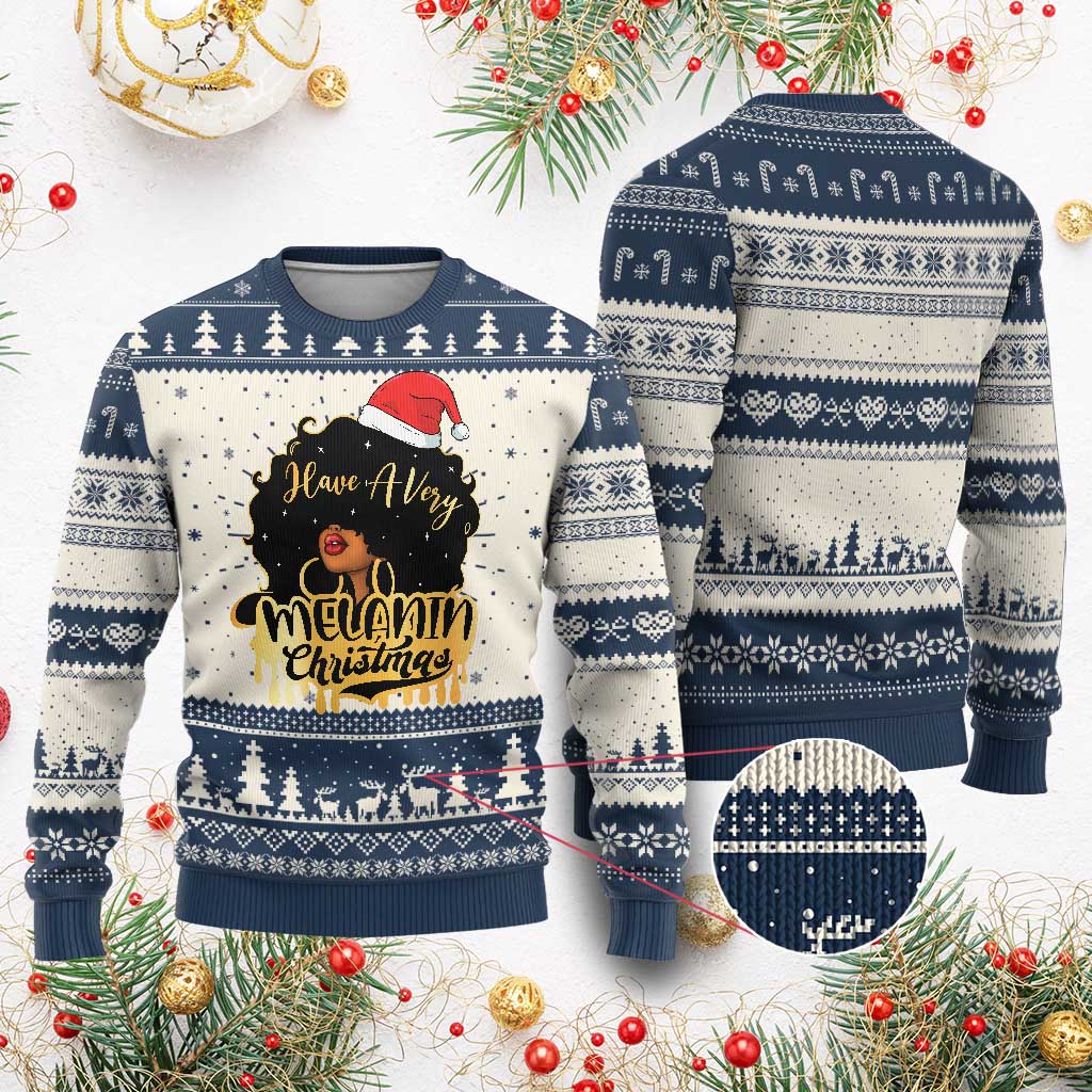 Have A Melanin Xmas African American Santa Girl Ugly Christmas Sweater