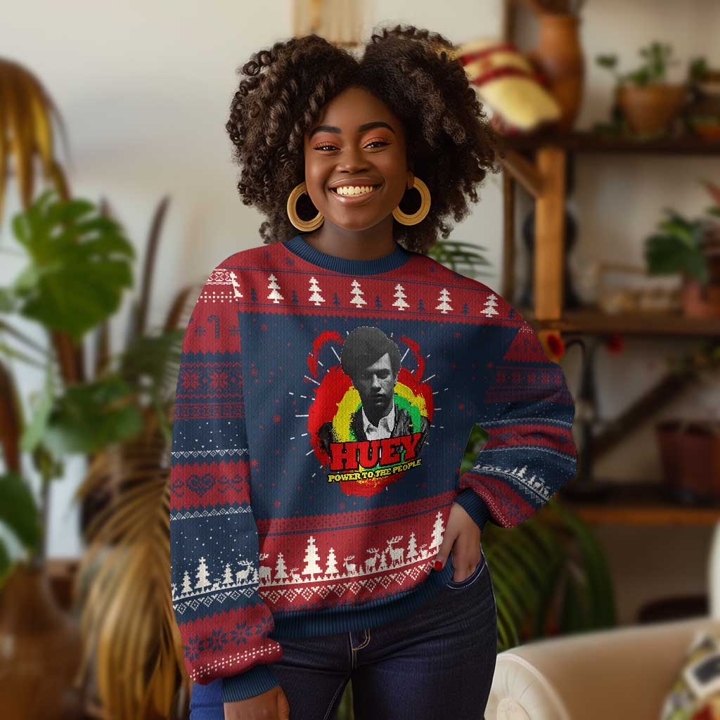Huey P Newton Ugly Christmas Sweater Power To The People Black History
