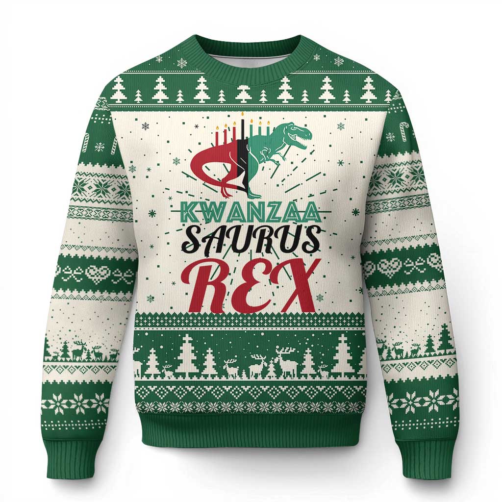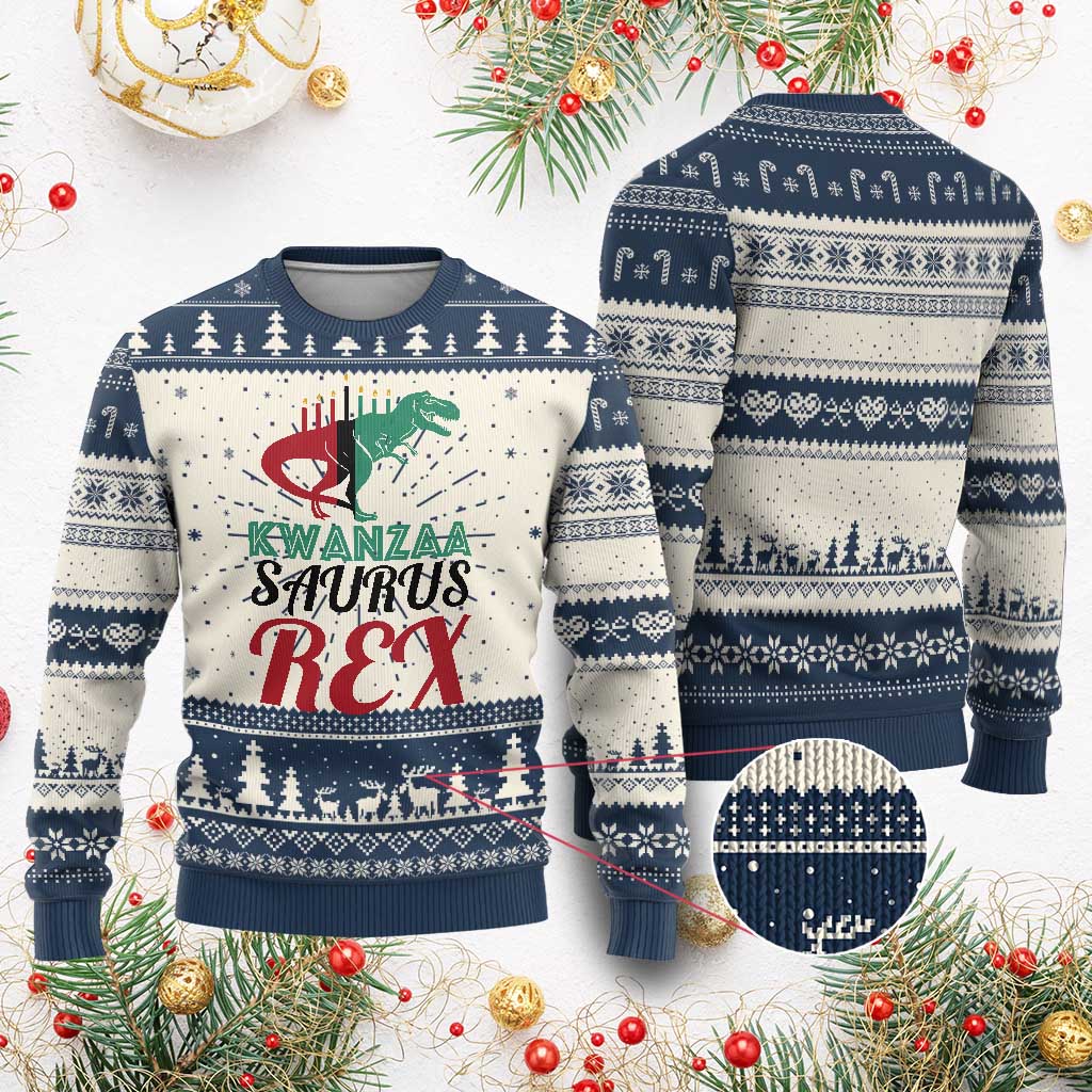 Kwanzaa Saurus Rex Kinara Candles Dinosaur T-rex African Heritage Holiday Ugly Christmas Sweater