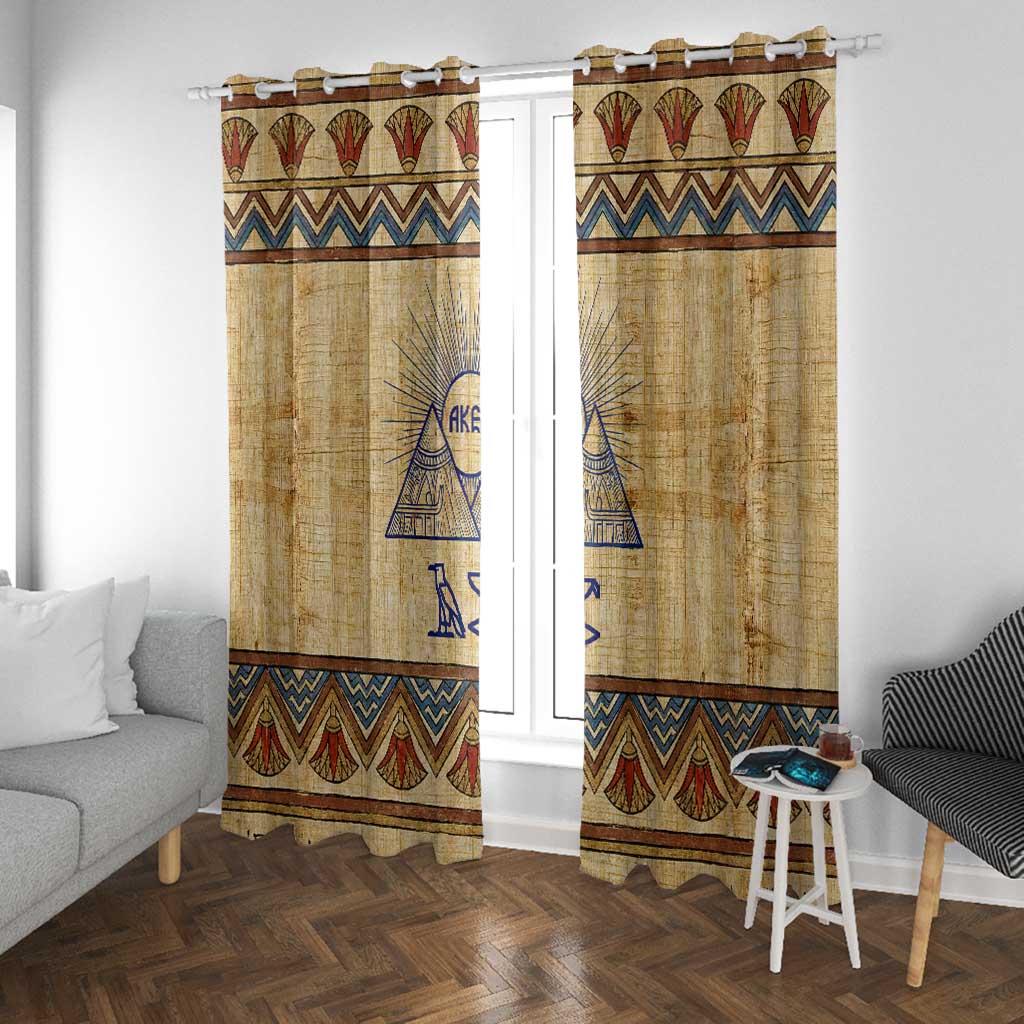 Aker Ancient Egyptian Window Curtain with Hieroglyphic Pattern, Pyramid Symbol, and Twin Lion Guardians Motif