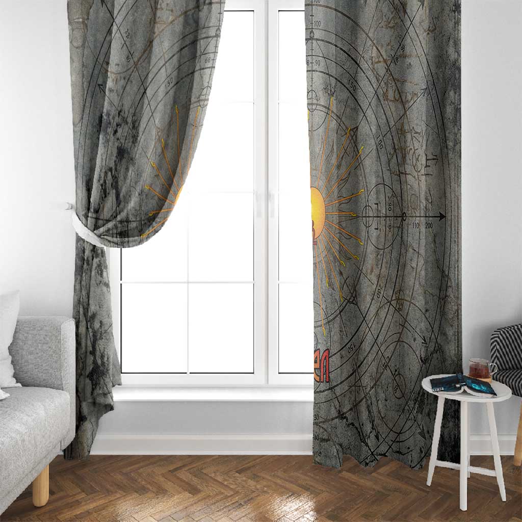 Aten Ancient Egyptian Window Curtain with Gray Astronomical Chart, Radiant Sun Disc Emblem, and Ankh