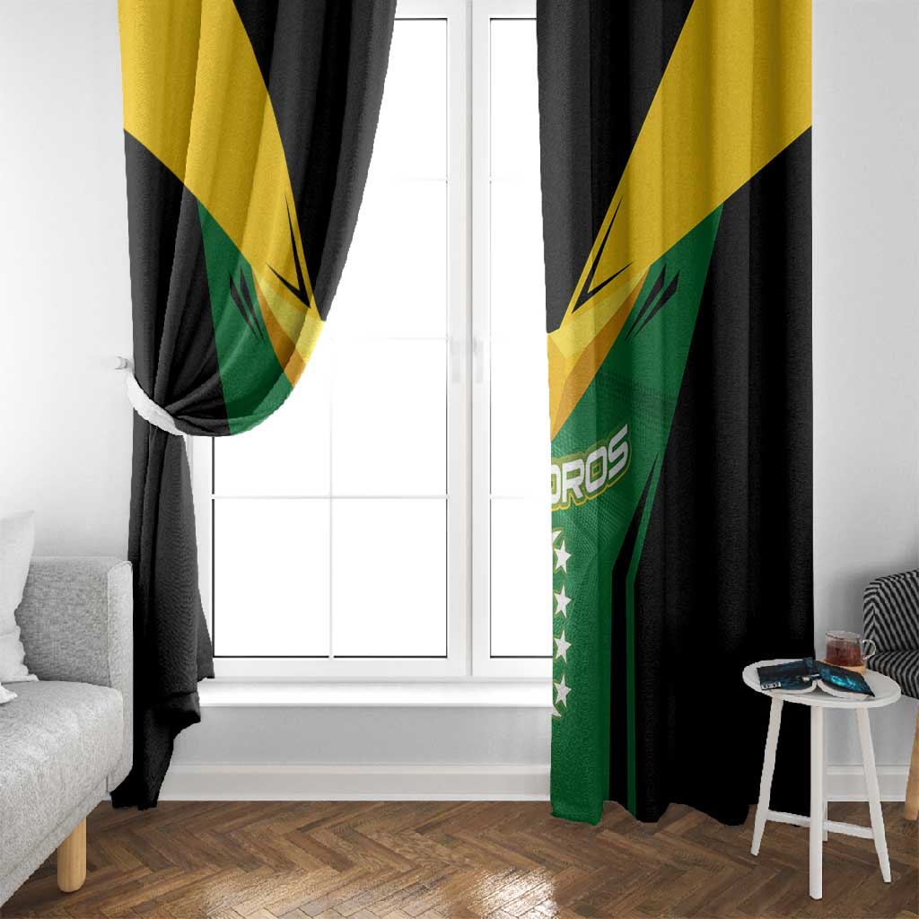 Comoros Window Curtain - National Colors Green Yellow Black Crescent Moon and Stars Emblem