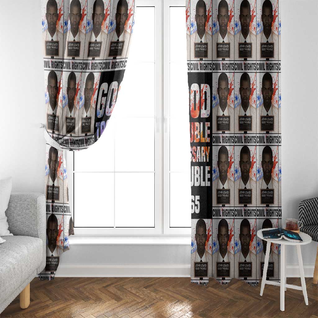 John Lewis Window Curtain with Mugshot Collage Design Civil Rights Portrait Good Trouble Tribute
