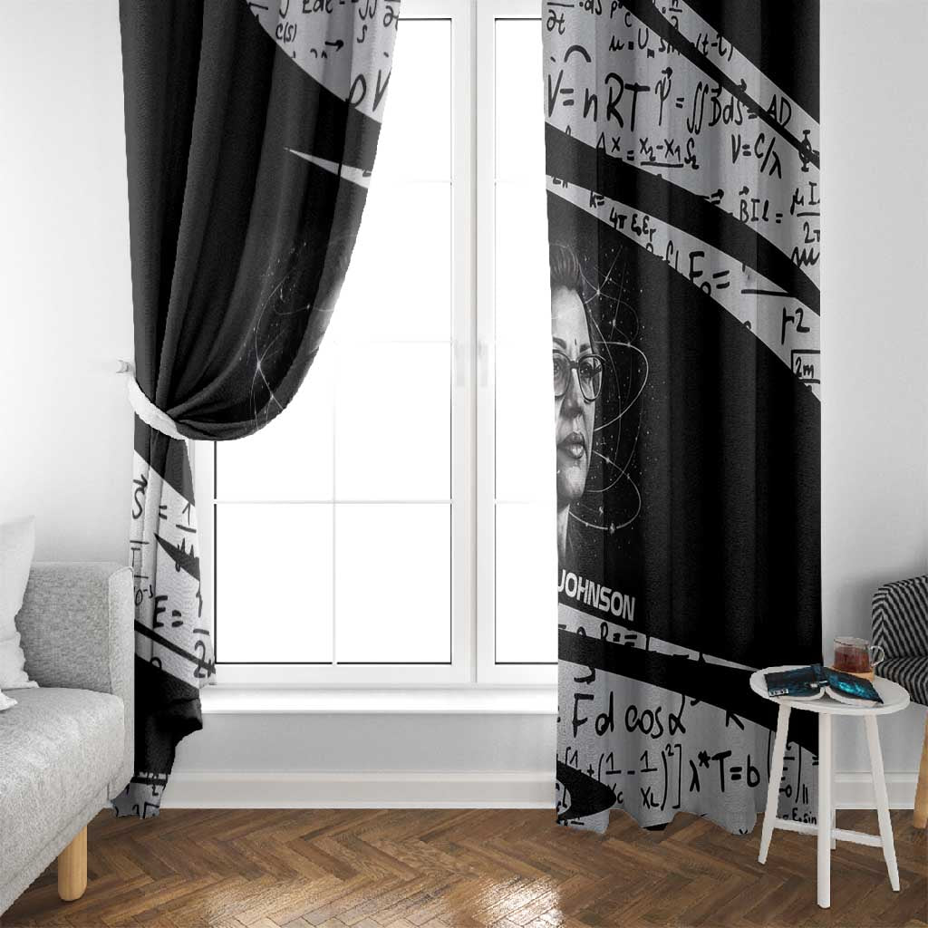 Katherine Johnson Window Curtain with Orbital Space Portrait, Historic NASA Launch Dates and Physics TS04