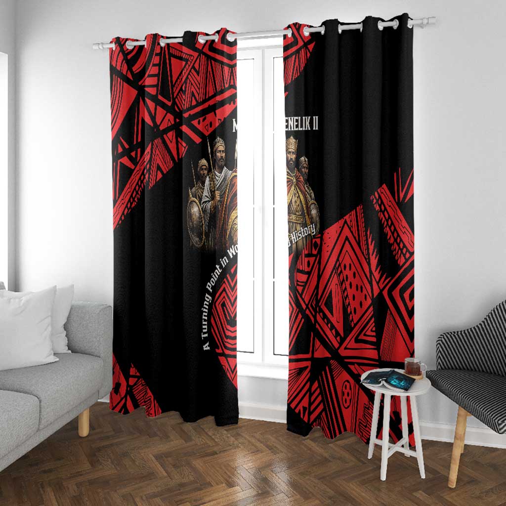 Menelik II Window Curtain with Adwa Victory Map, Africa Defeated an Empire Text and Red Geometric