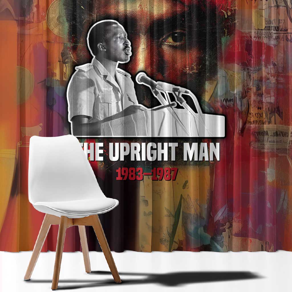 Thomas Sankara Burkina Faso Window Curtain with Bold Portrait and The Upright Man Tribute Design
