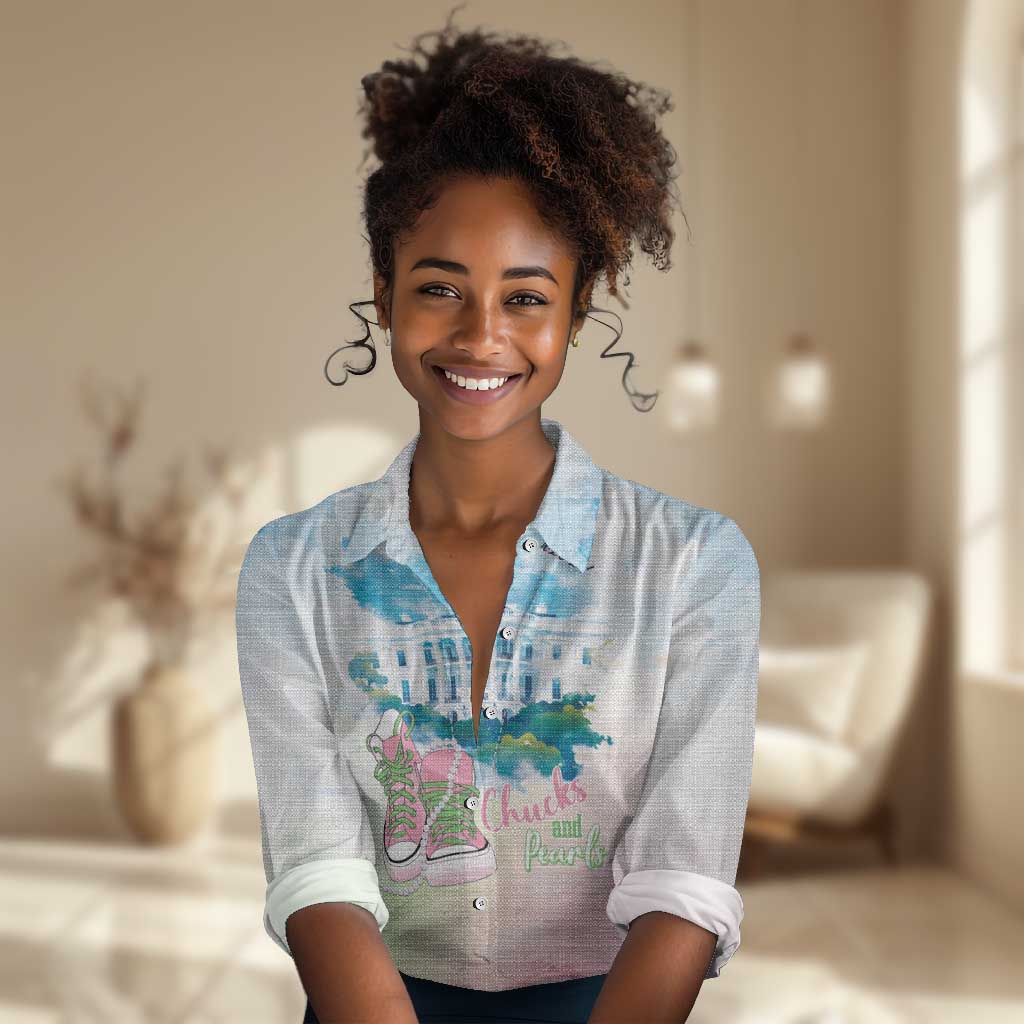 Chucks N Pearls 2024 Women Casual Shirt Pink Green Rocking The World