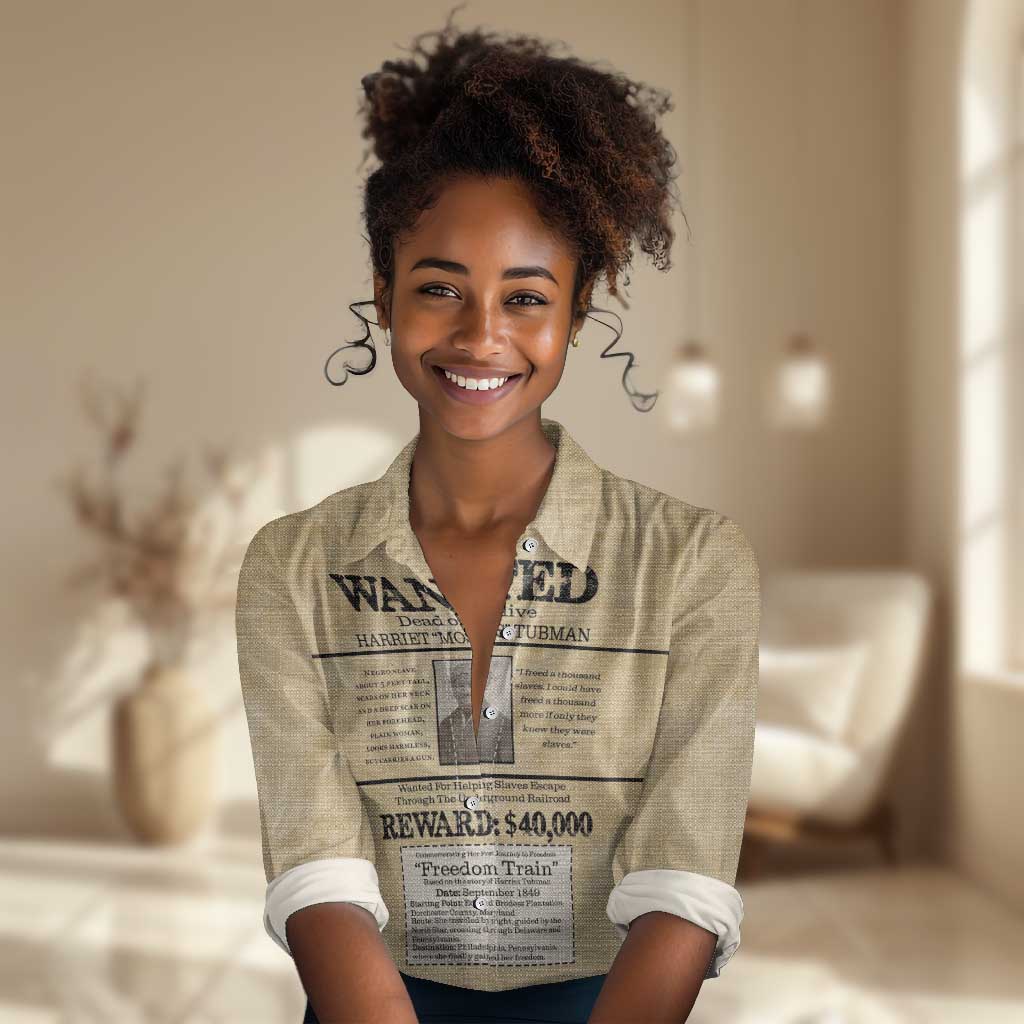 Harriet Tubman Freedom Women Casual Shirt Vintage Wanted Poster Style