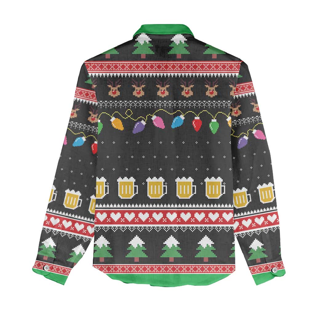 Ho Ho Ho Hold My Beer Santa Afro Women Casual Shirt Christmas Beer
