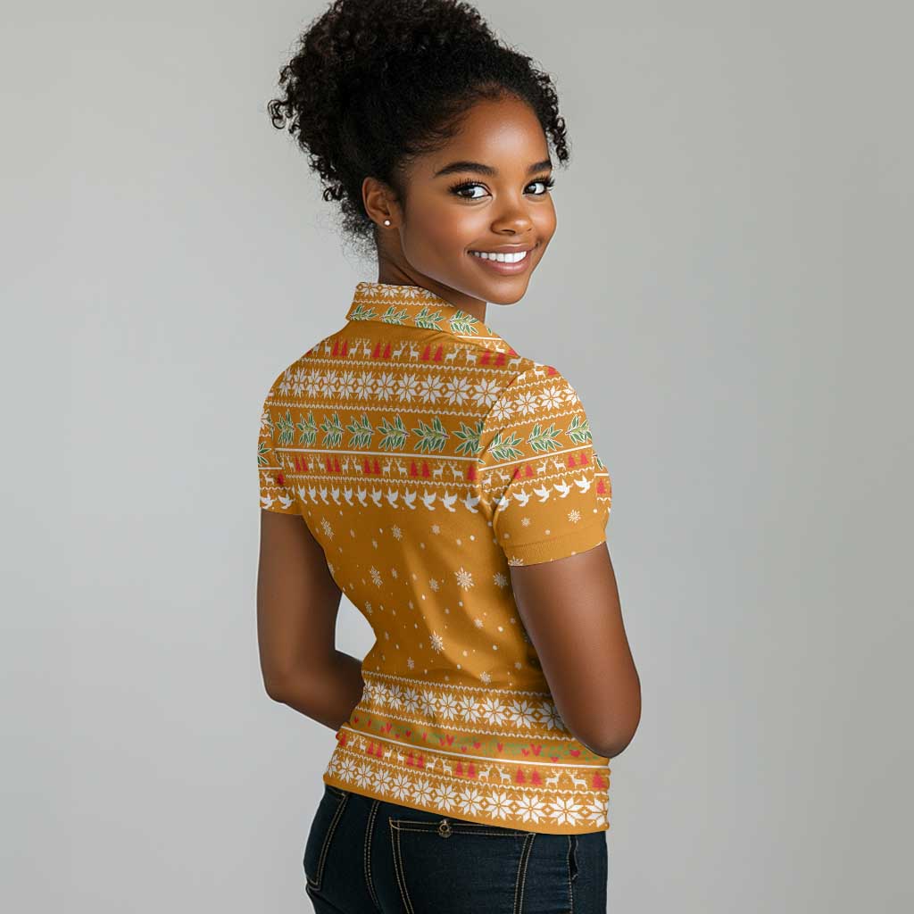 Cyprus Christmas Women Polo Shirt Santa Holding Doves Olive Branch Snowflakes
