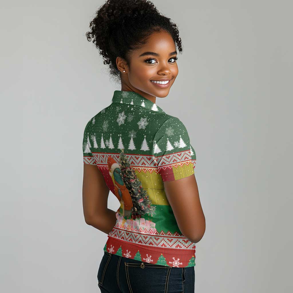 Guinea Bissau Christmas Women Polo Shirt Santa Penguin Christmas Tree and Snowflake
