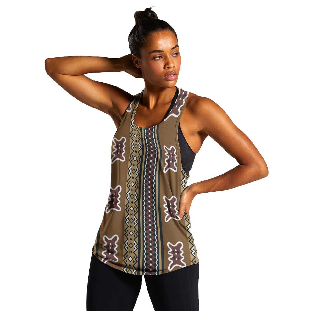 Mali Mud Cloth Women Racerback Tank Traditional Bologan Pattern