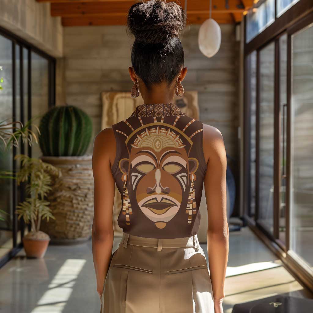 African Women Women Sleeveless Polo Shirt Tribal Ethnic Mask