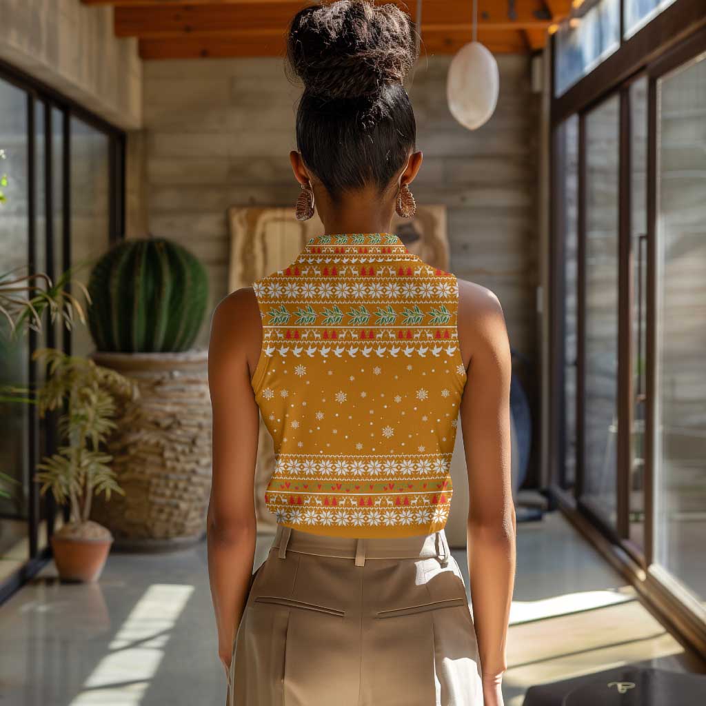 Cyprus Christmas Women Sleeveless Polo Shirt Santa Holding Doves Olive Branch Snowflakes TS04