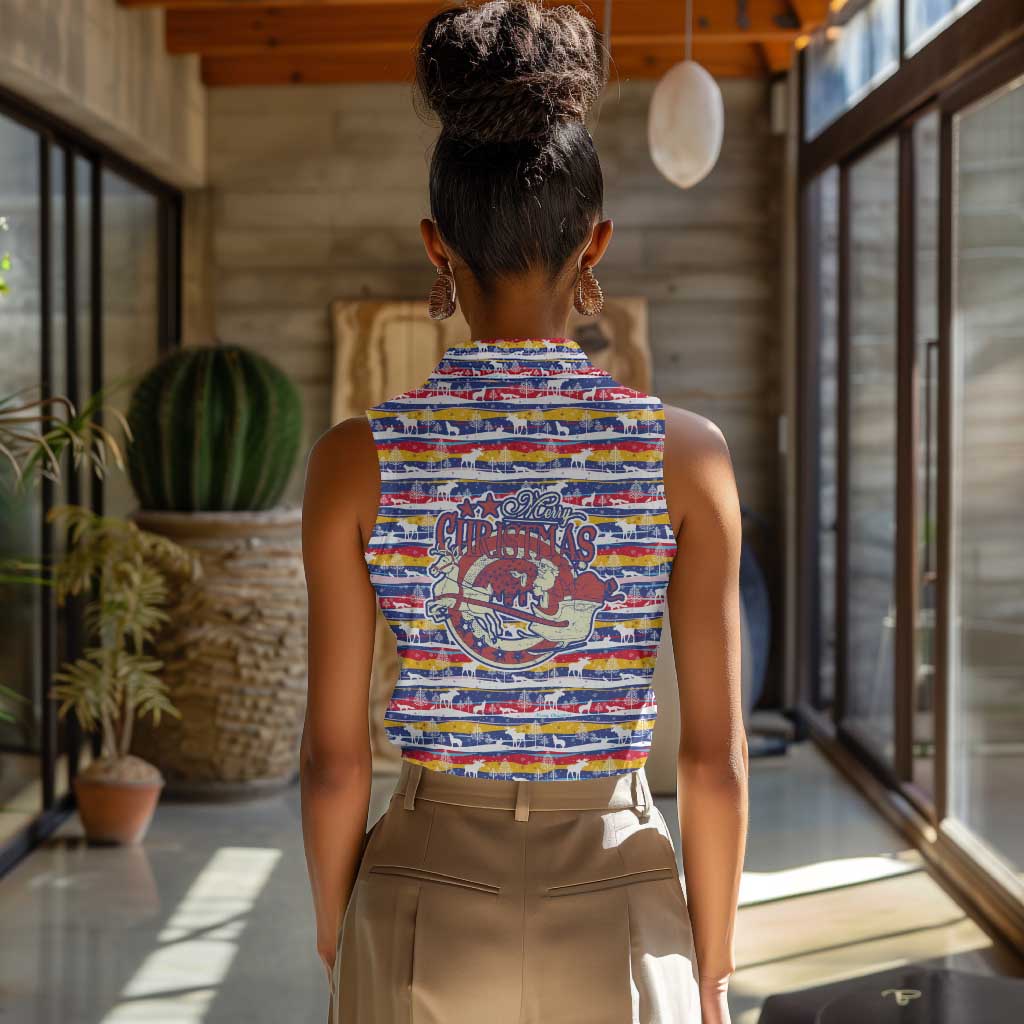 Haiti Christmas Women Sleeveless Polo Shirt Blue Red Yellow Xmas Santa Sleigh and Coat of Arms