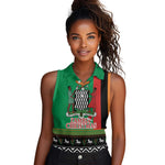 Afro Zambia Christmas Women Sleeveless Polo Shirt Coat Of Arms With Kente Pattern
