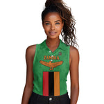 Personalised Afro Zambia Women Sleeveless Polo Shirt Flag Style Mix Kente Pattern