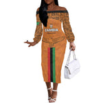 Custom Zambia Football Off The Shoulder Long Sleeve Dress Come On Chipolopolo