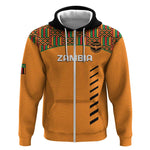 Custom Zambia Football Zip Hoodie Copper Queens Kente Pattern