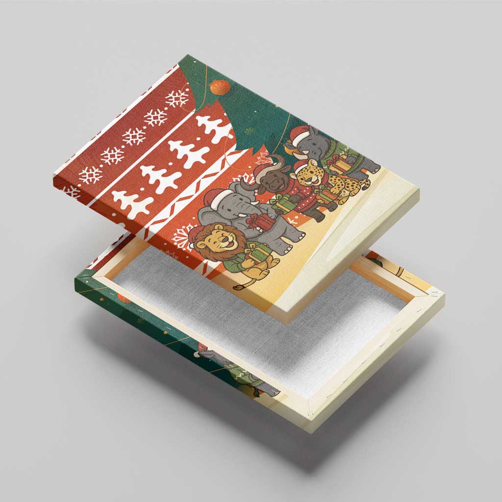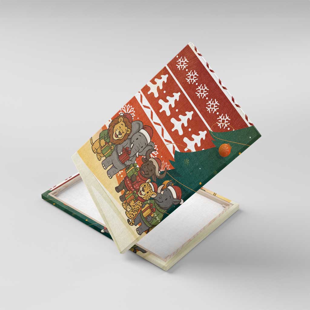 Zambia Christmas Canvas Wall Art African Animals Tree Snowflakes and National Emblem