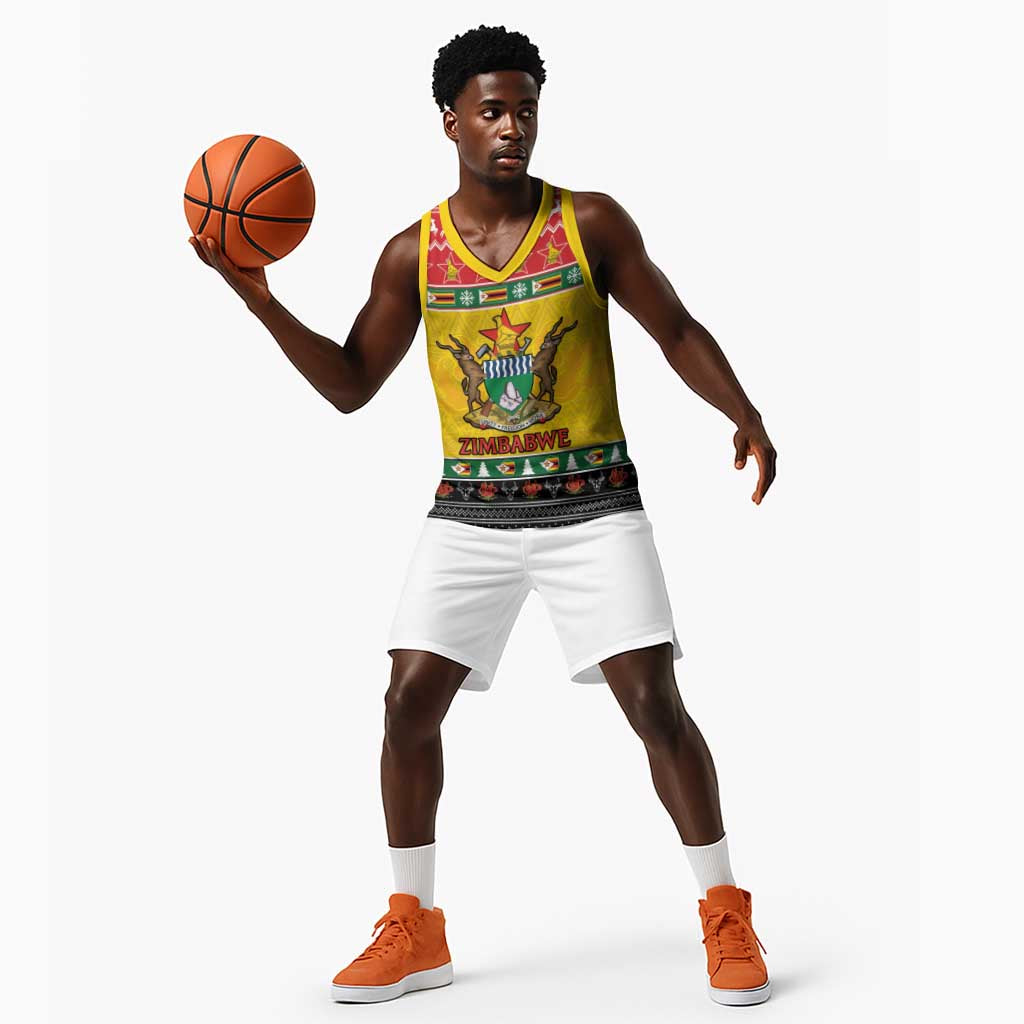 Afro Zimbabwe Christmas Basketball Jersey Coat Of Arms - African Pattern