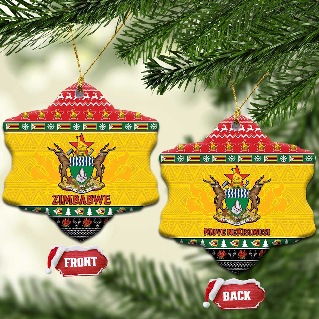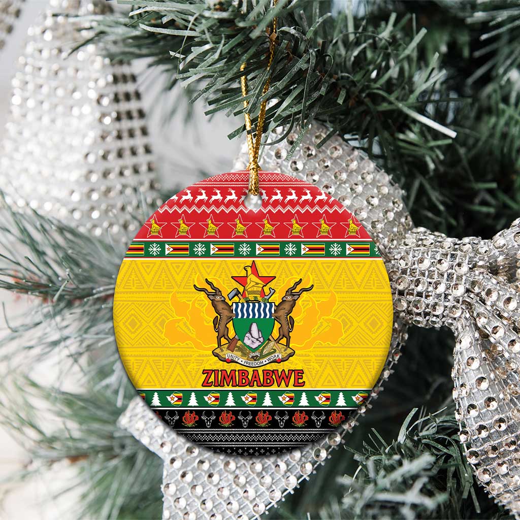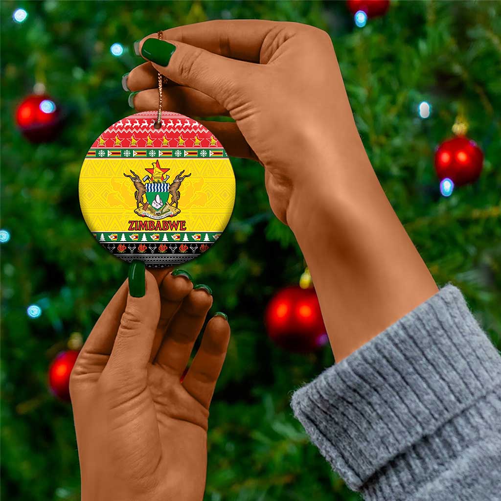 Afro Zimbabwe Christmas Ceramic Ornament Coat Of Arms with African Pattern