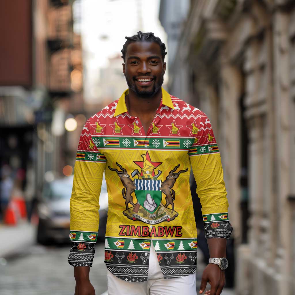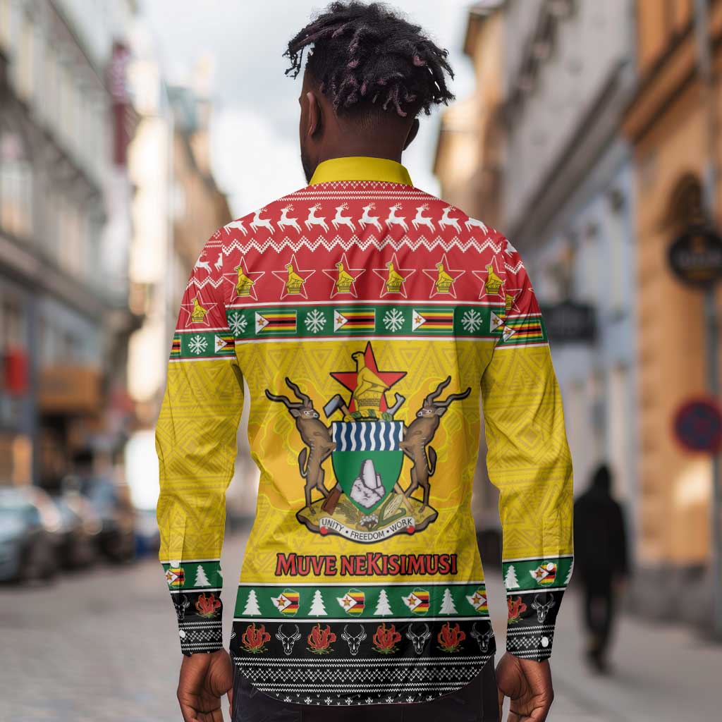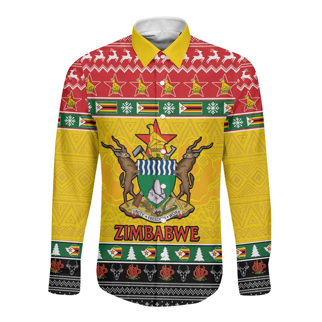 Afro Zimbabwe Christmas Long Sleeve Button Shirt Coat Of Arms - African Pattern