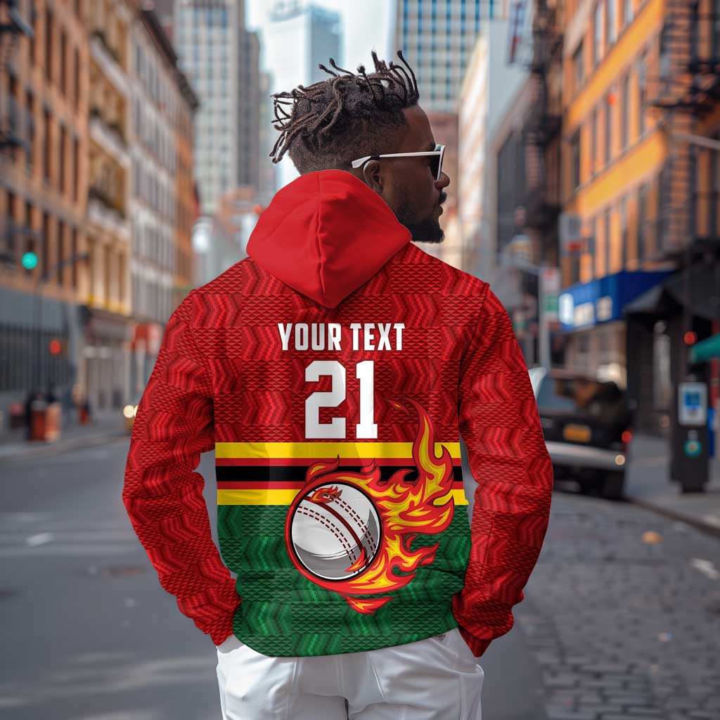 Custom Africa Cricket Zimbabwe Zip Hoodie The Chevrons Cricket Ball Fire