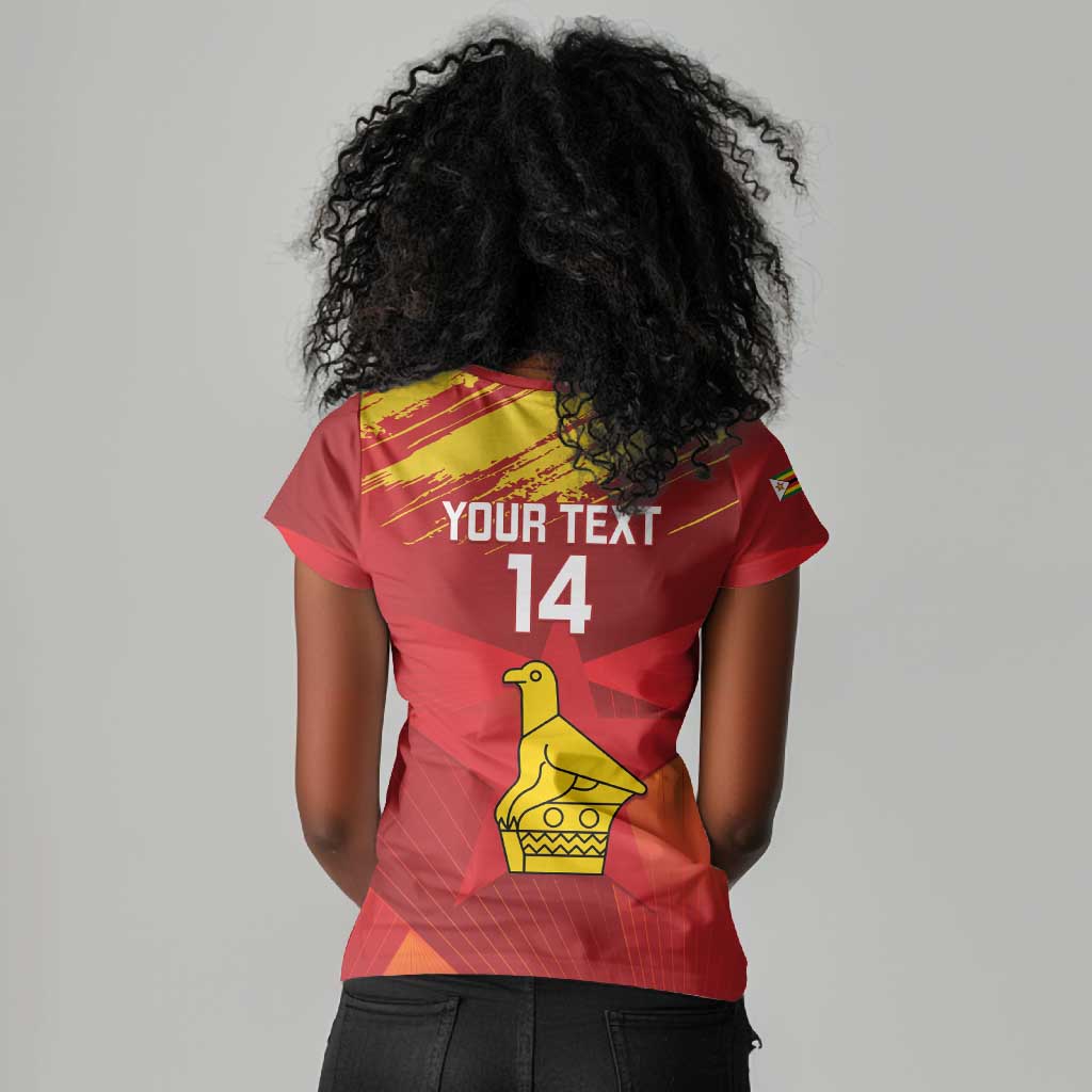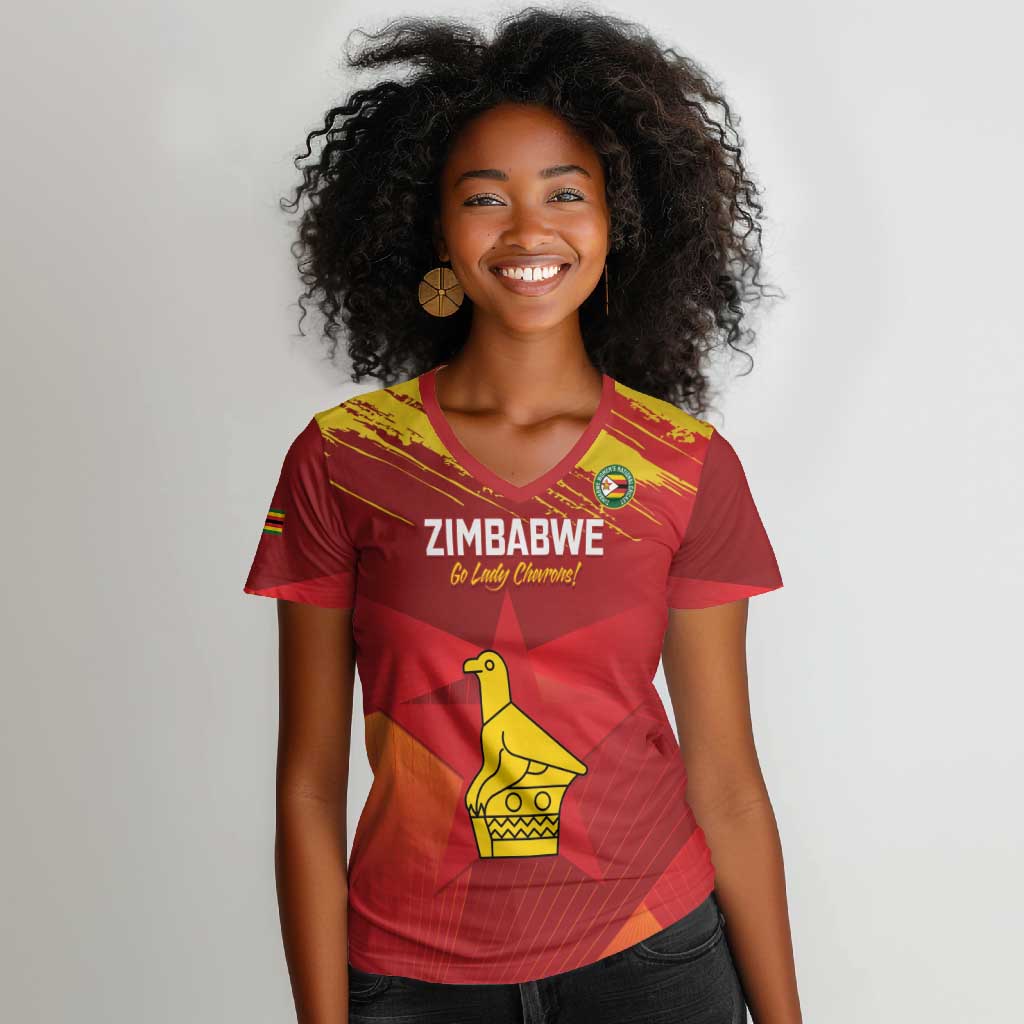 Custom Zimbabwe Cricket Women V-Neck T-Shirt Go Lady Chevrons Grunge Style
