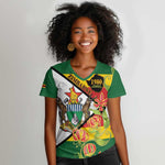Nyika yeZimbabwe Women V-Neck T-Shirt Happy Independence Day - Flame Lily Flowers