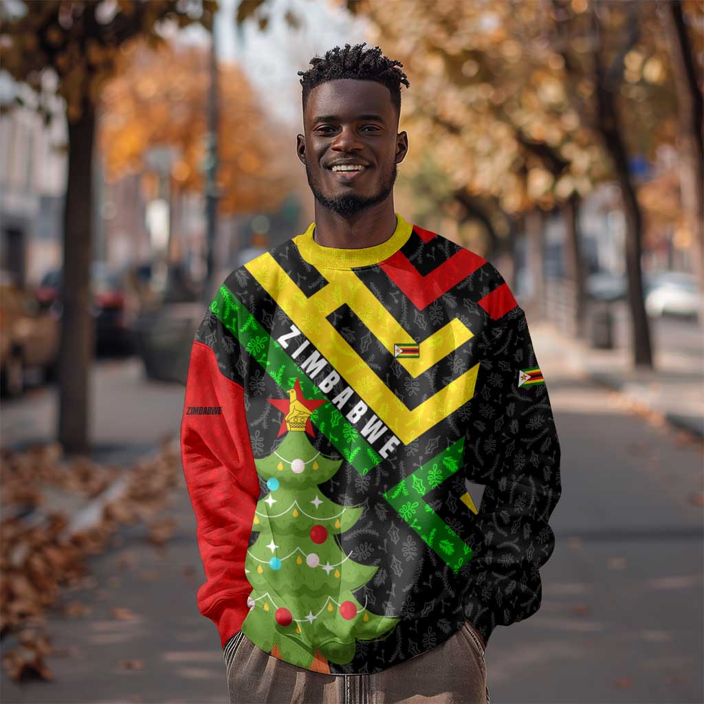 Zimbabwe Christmas Sweatshirt Flag Colors Xmas Tree and Holiday
