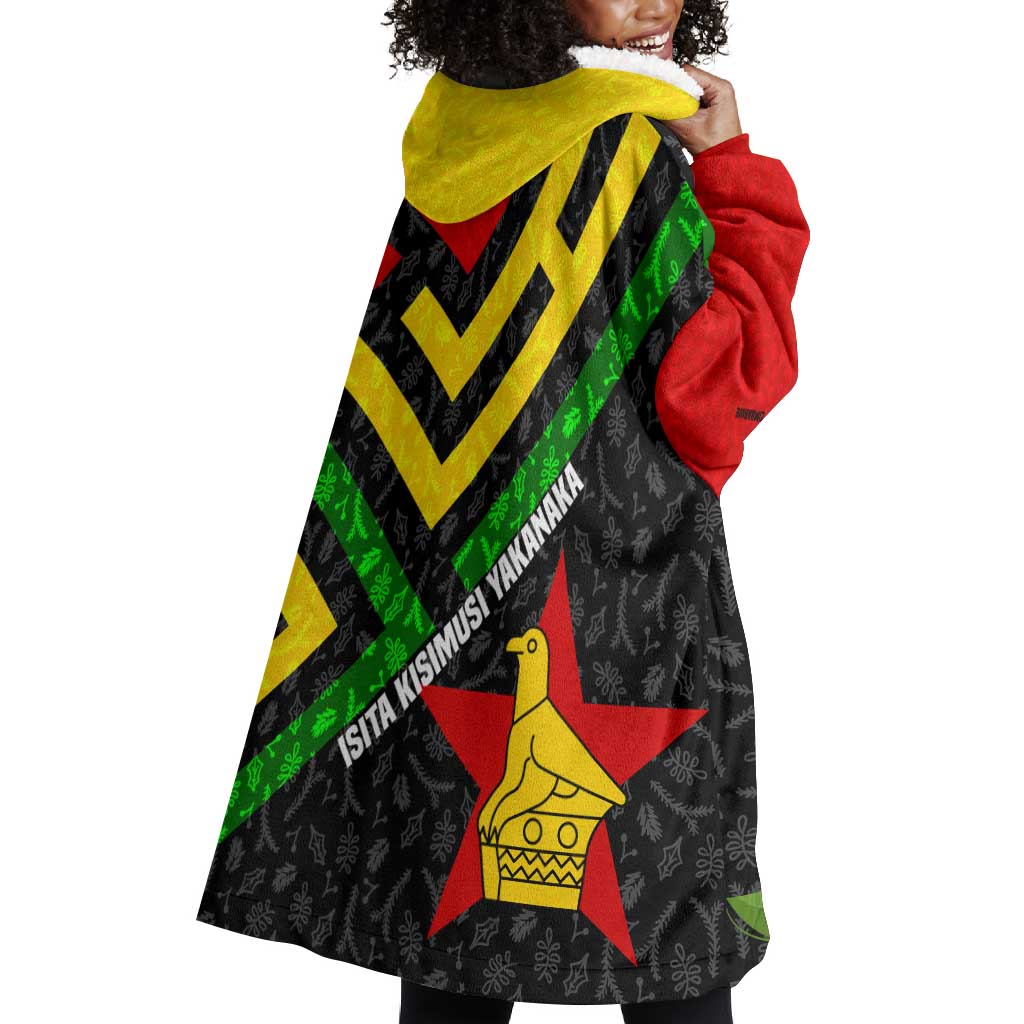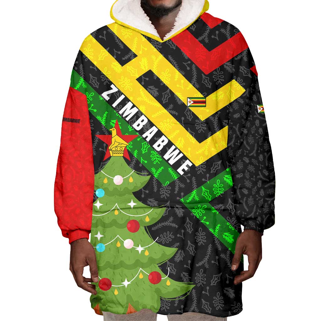 Zimbabwe Christmas Wearable Blanket Hoodie Flag Colors Xmas Tree and Holiday