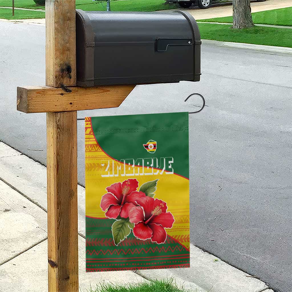 Zimbabwe Flag Map Garden Flag African Tribal Pattern Red Hibiscus Flowers TS04
