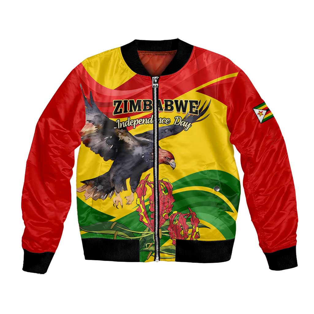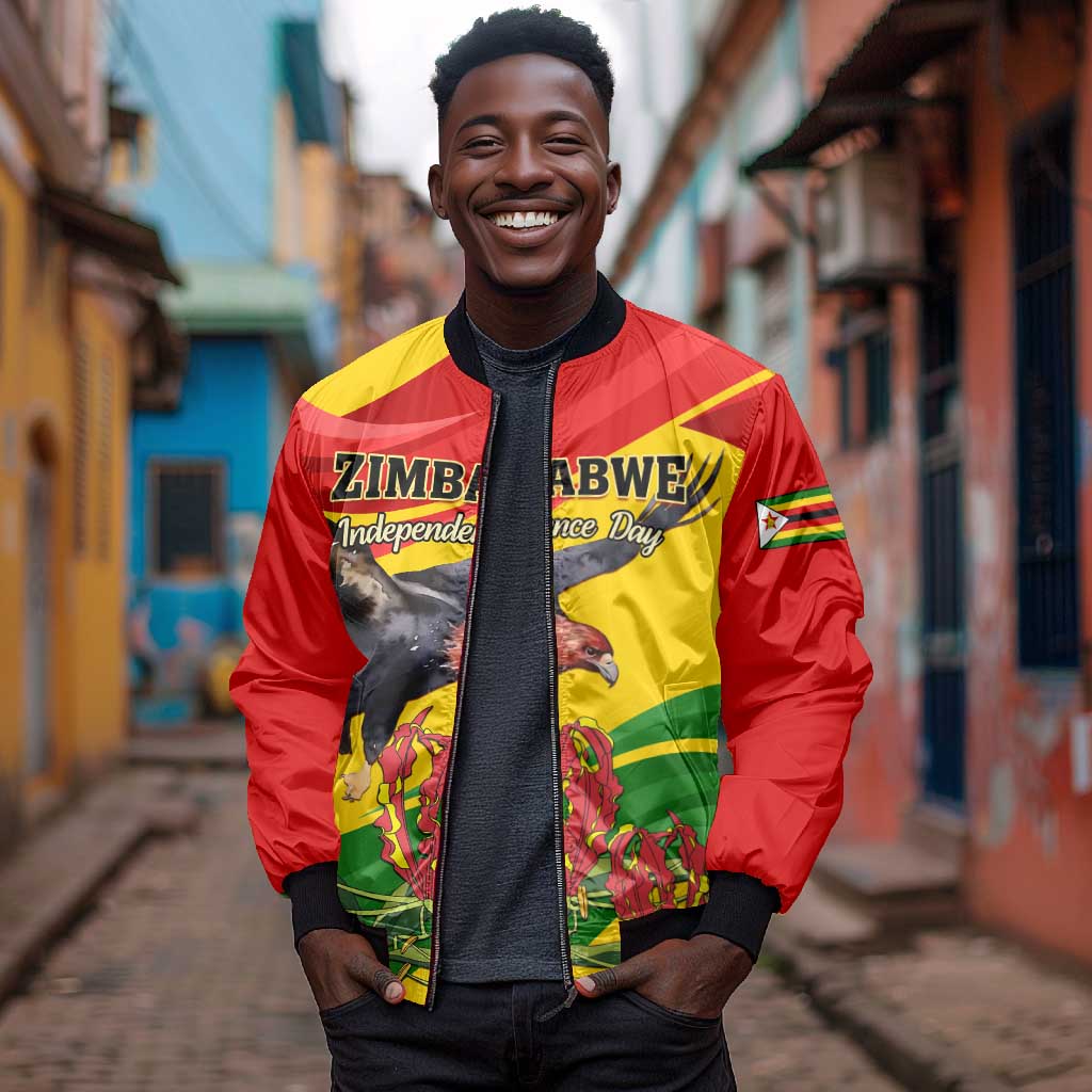 Zimbabwe Independence Day Bomber Jacket Featuring Chapungu Bird and Flame Lily