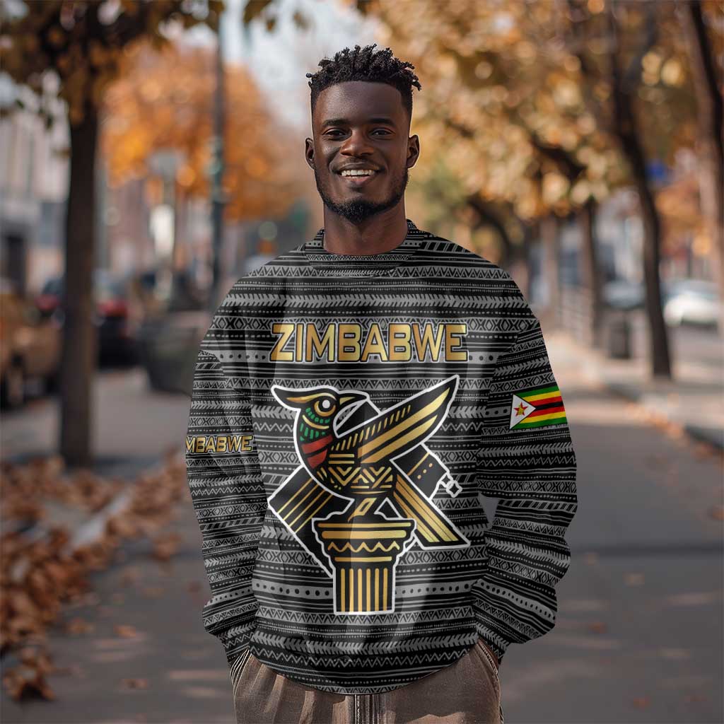Zimbabwean Bird Statue Sweatshirt Tribal Pattern Flag Patch and Heritage Symbol
