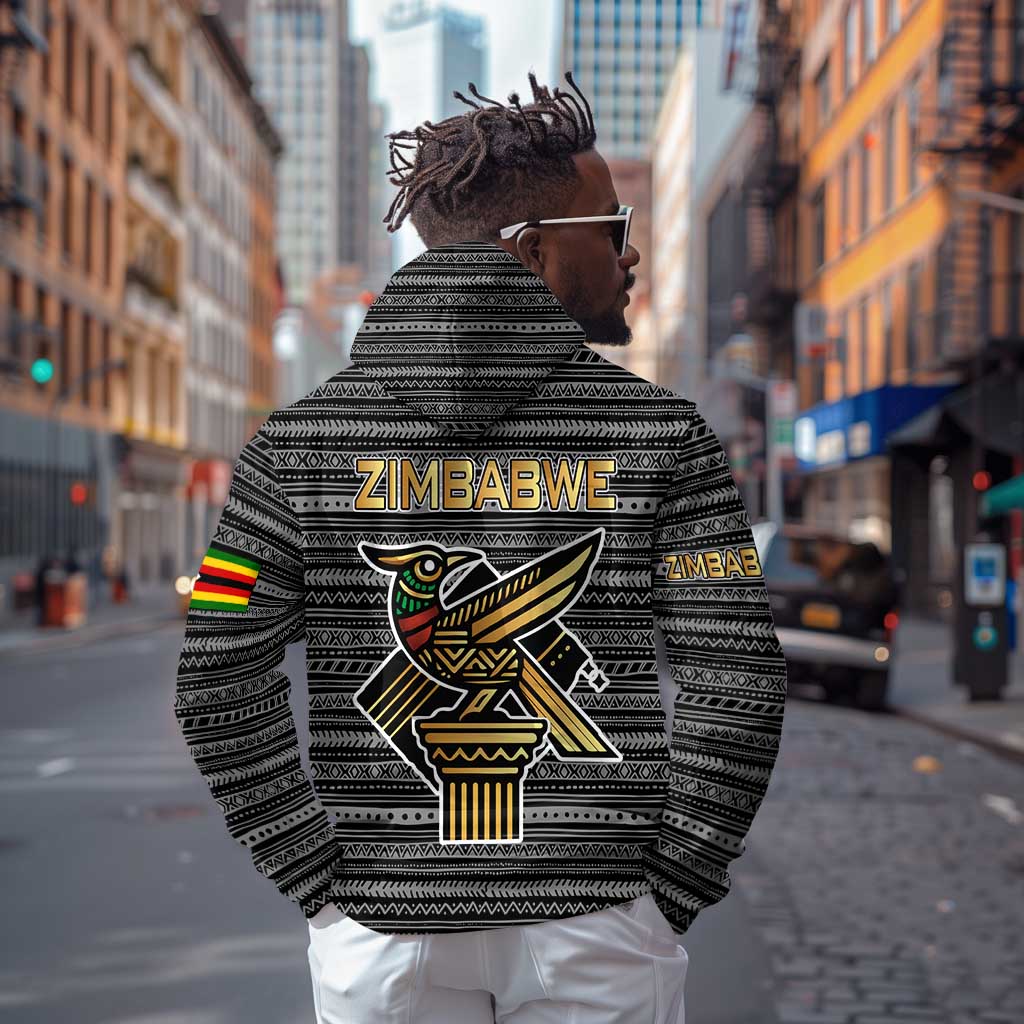 Zimbabwean Bird Statue Zip Hoodie Tribal Pattern Flag Patch and Heritage Symbol TS04