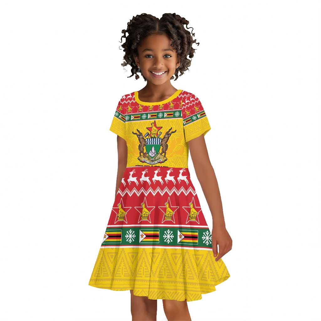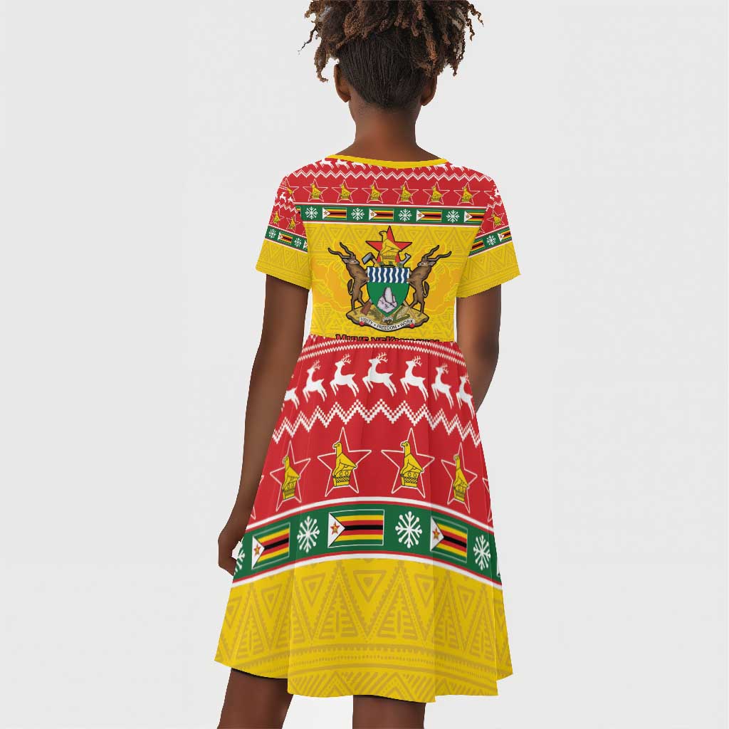 Afro Zimbabwe Christmas Kid Short Sleeve Dress Coat Of Arms - African Pattern