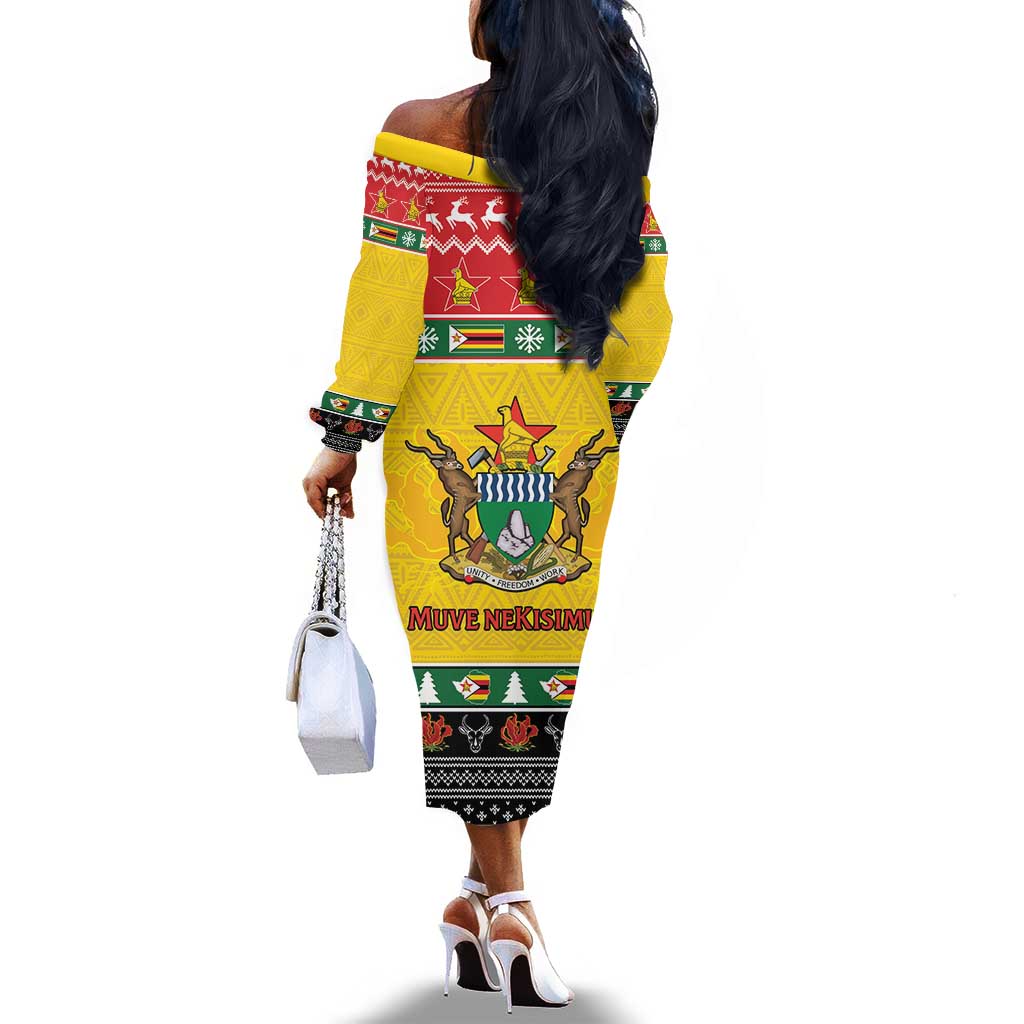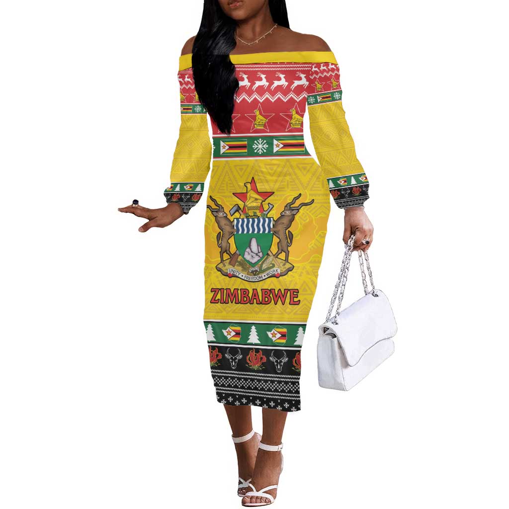 Afro Zimbabwe Christmas Off The Shoulder Long Sleeve Dress Coat Of Arms - African Pattern