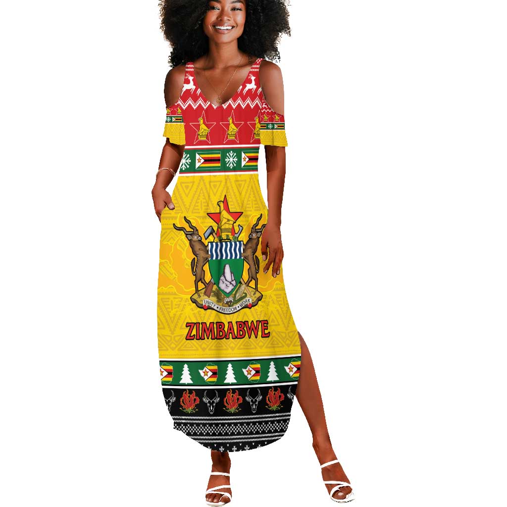 Afro Zimbabwe Christmas Summer Maxi Dress Coat Of Arms - African Pattern