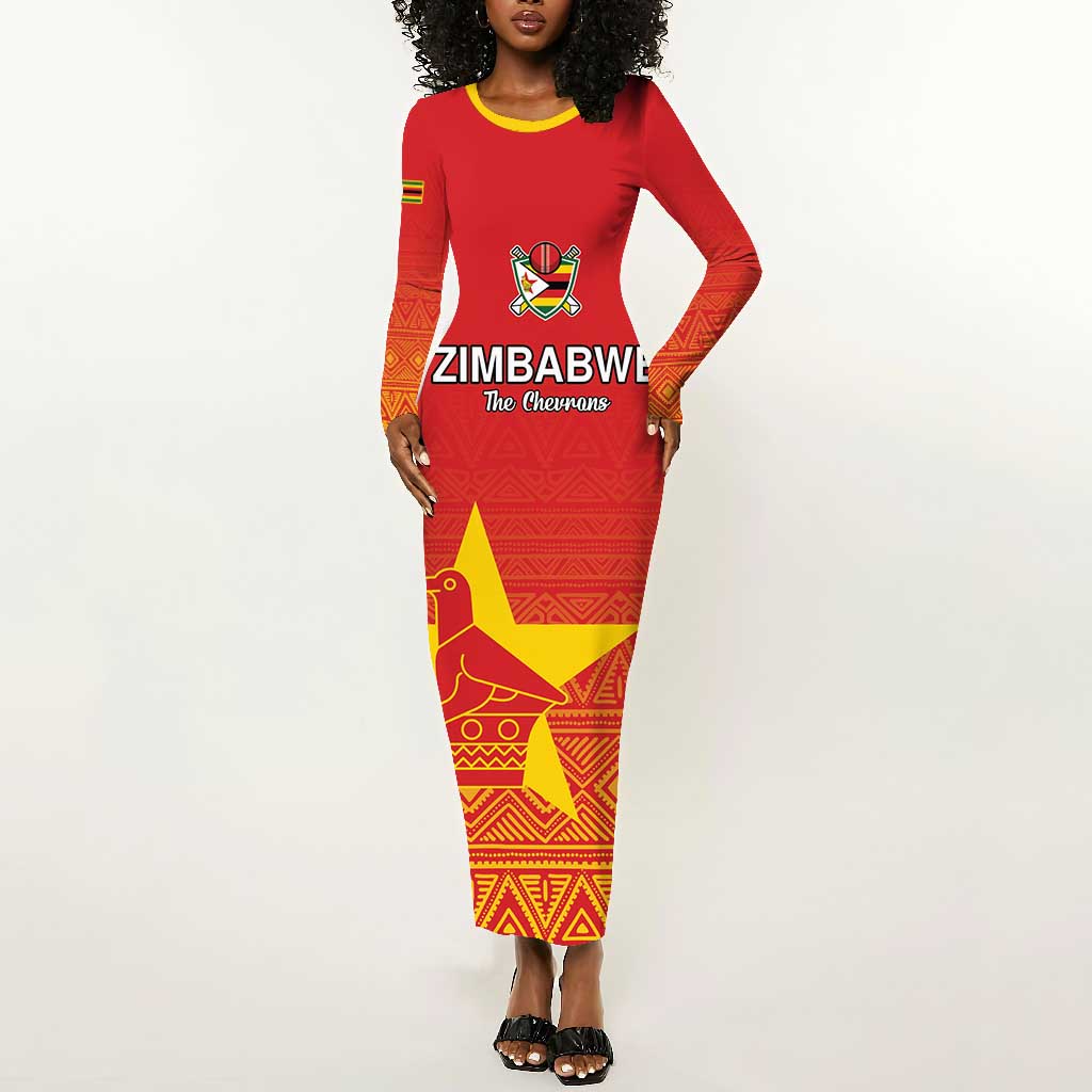 Custom Zimbabwe Cricket Long Sleeve Bodycon Dress Go Champions