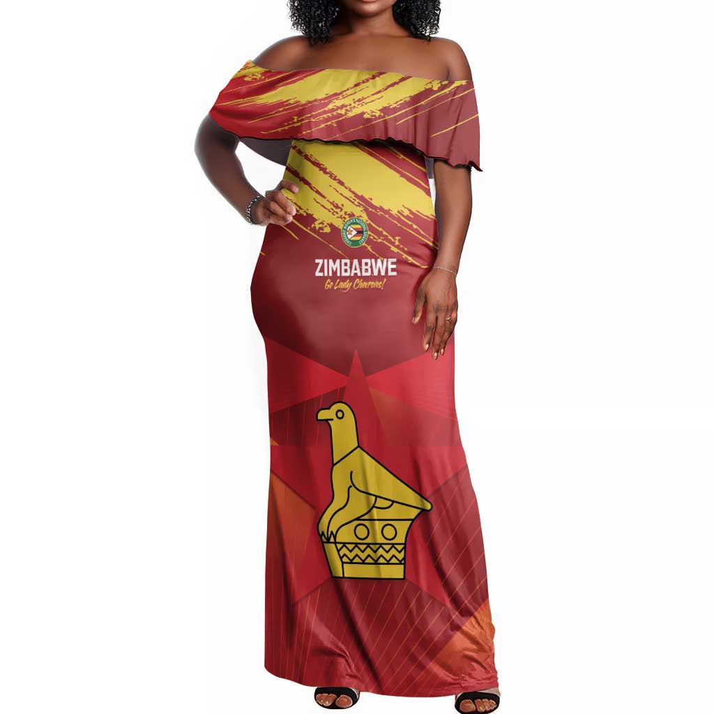 Custom Zimbabwe Cricket Off Shoulder Maxi Dress Go Lady Chevrons Grunge Style