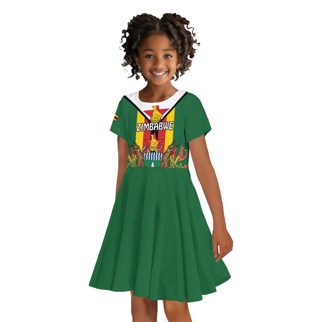 Personalised Zimbabwe Independence Day Kid Short Sleeve Dress Coat Of Arms Fire Lilies