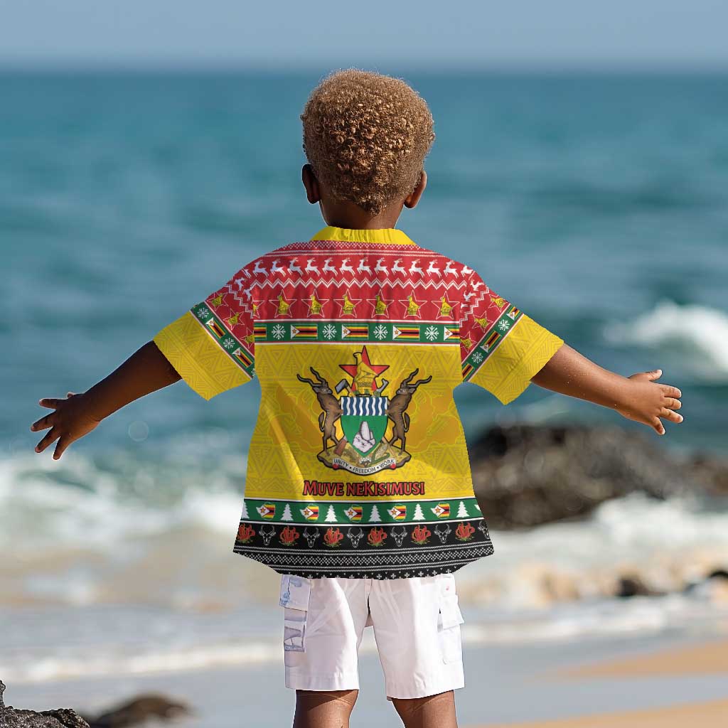 Afro Zimbabwe Christmas Kid Hawaiian Shirt Coat Of Arms - African Pattern