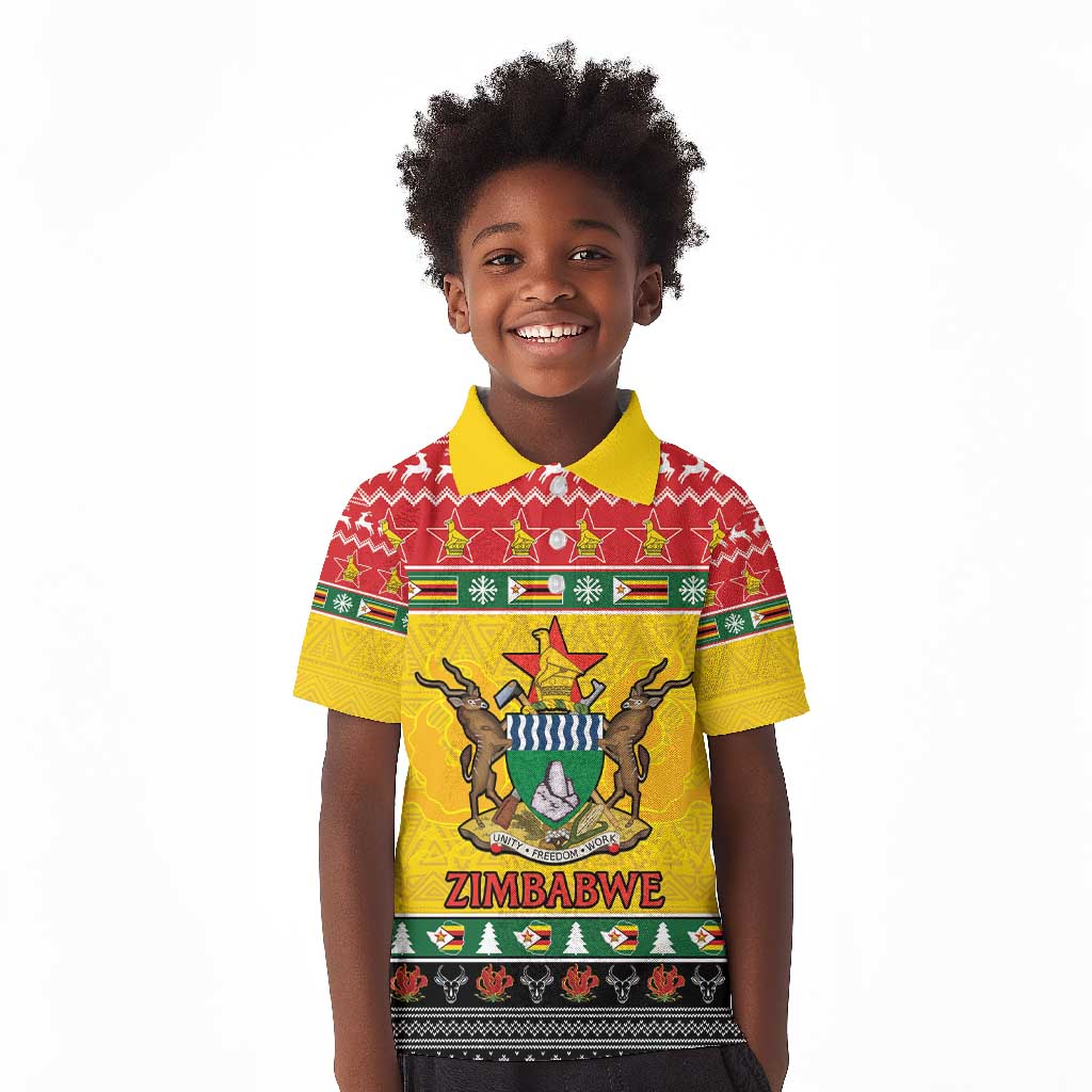 Afro Zimbabwe Christmas Kid Polo Shirt Coat Of Arms - African Pattern