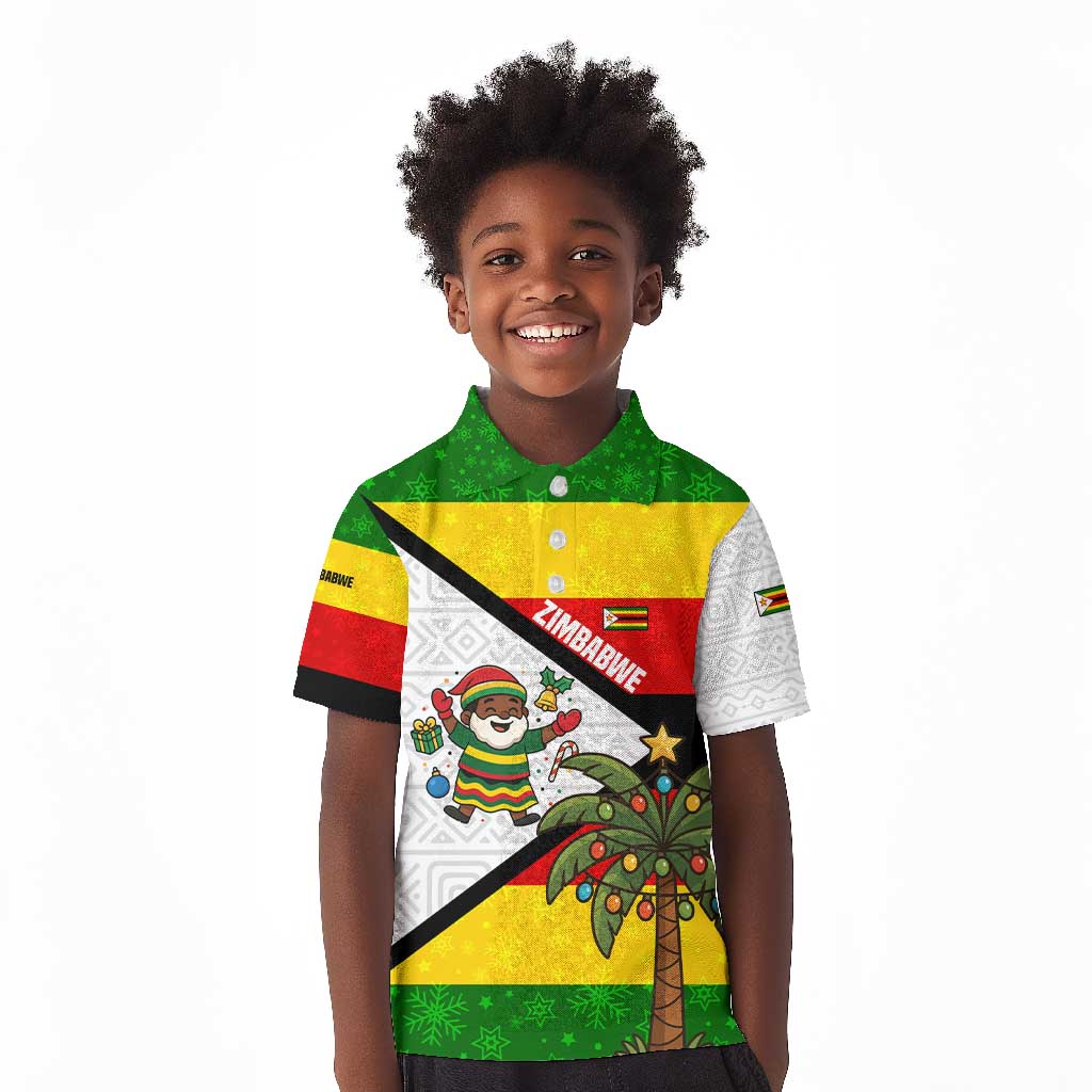Zimbabwe Christmas Kid Polo Shirt Festive Santa Palm Tree and Red Yellow Green Flag